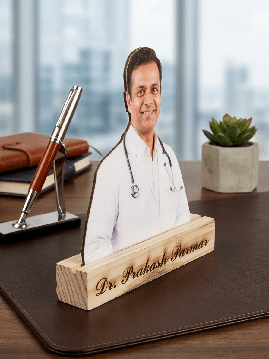 Celebrate an achievement, a milestone, or a special person with this premium, customized photo desk stand. We take your chosen photograph and transform it into a vibrant, precision-cut, dimensional plaque that stands elegantly on a genuine, hand-finished wooden base. Perfect for office desks, reception counters, or home studies, this sophisticated piece adds a personalized touch to any professional or personal space.